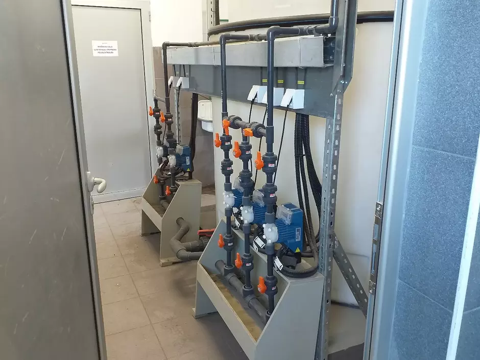The capacity of the facility is 2x45 m3/h=90m3/h. The facility is equipped with an automatic sampler, automatic control and management of the facility work. Facility is designed to provide automatic control of all separate WWTPs.